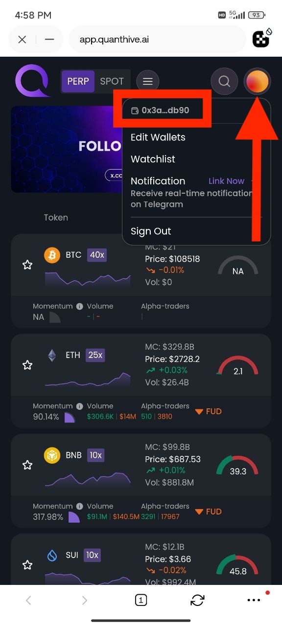 Ready to trade smarter? Sign up for a free QuantHive account in just a few steps! Connect your wallet, access AI-driven trading insights, and start making data-backed decisions. Follow the guide below to get started.
