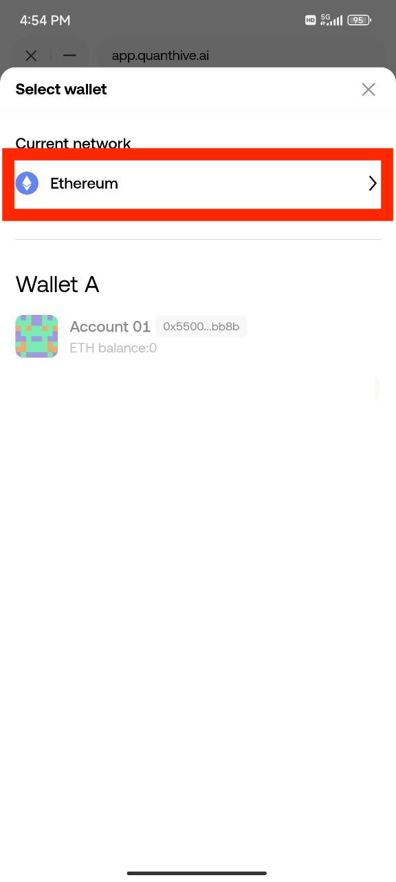 Step 7: A wallet selection window will appear. Tap on Ethereum to switch networks.