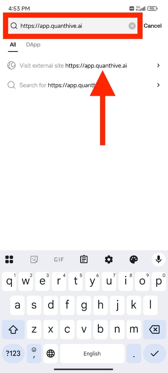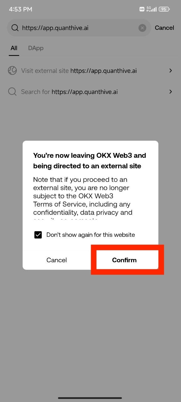 Step 3: Key in this URL https://app.quanthive.ai then tap on Visit external site https://app.quanthive.ai