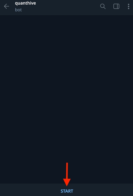 Step 4: A Telegram bot message will appear. Click START to initiate the process and link your QuantHive account with your Telegram account.