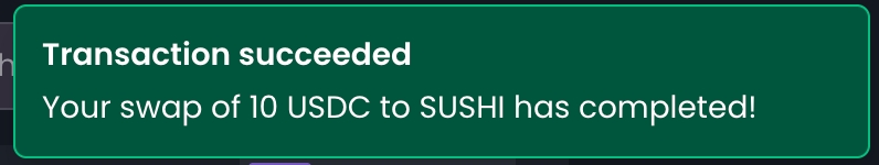 Step 9: Once the swap is successfully completed, a confirmation message will appear at the top right of the screen.