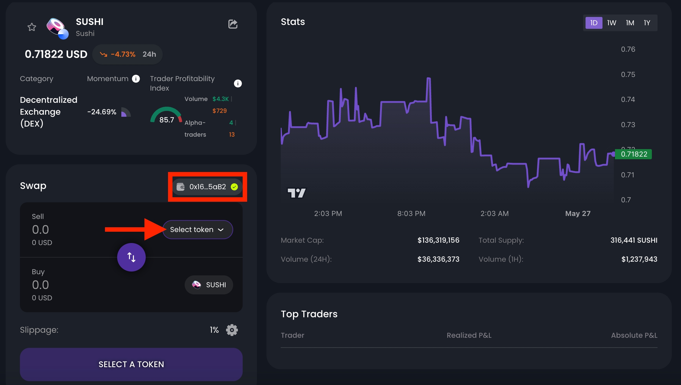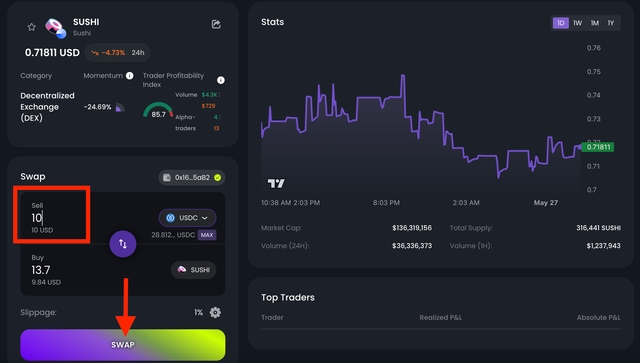 For this example, we’ll use the $SUSHI token.