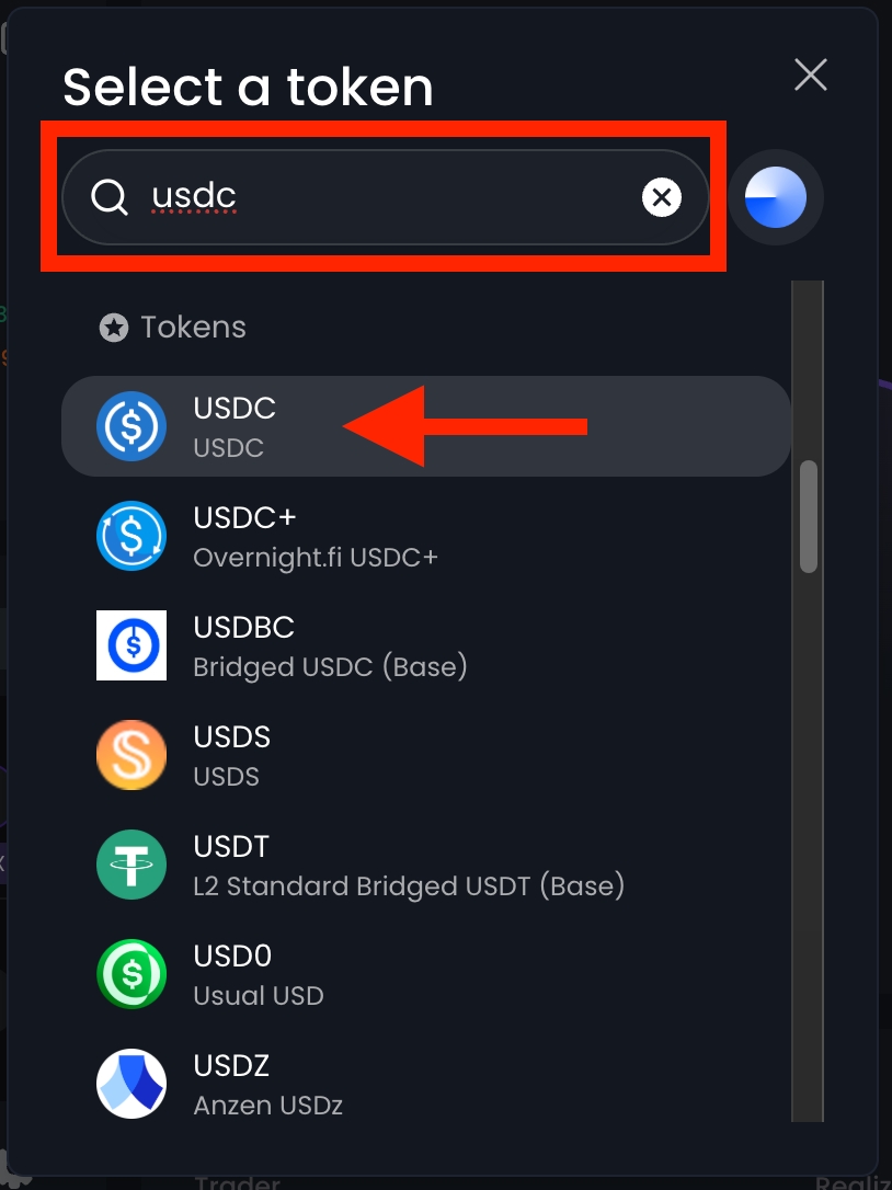 Step 5: A token selection window will appear. Type in the name of the token you want to swap from, then click on that token from the list.