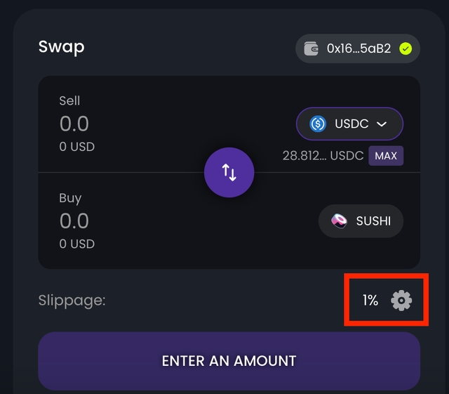 Step 1: This issue is most likely caused by high slippage during the swap. To resolve it, adjust the slippage tolerance by clicking the gear icon.