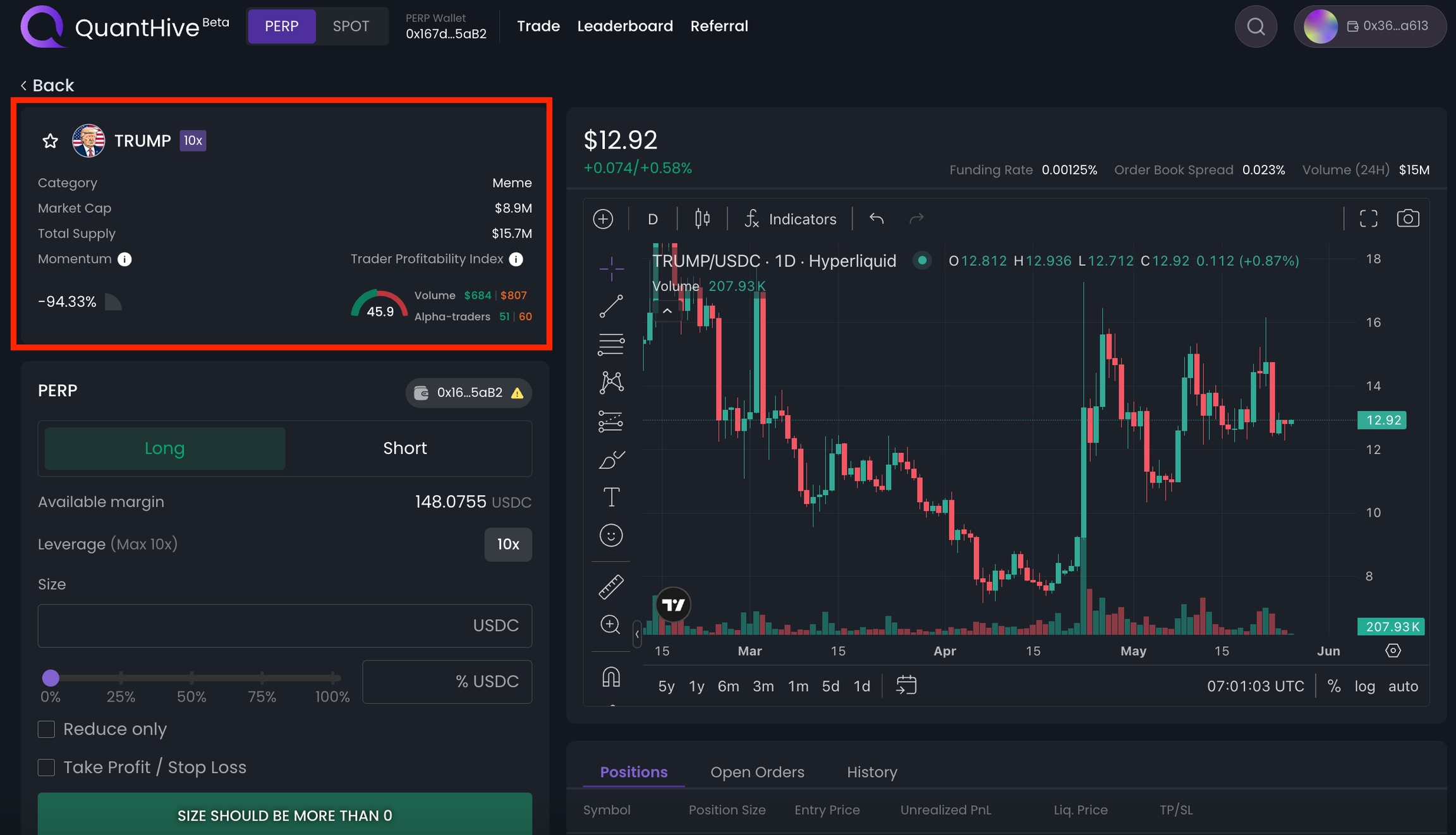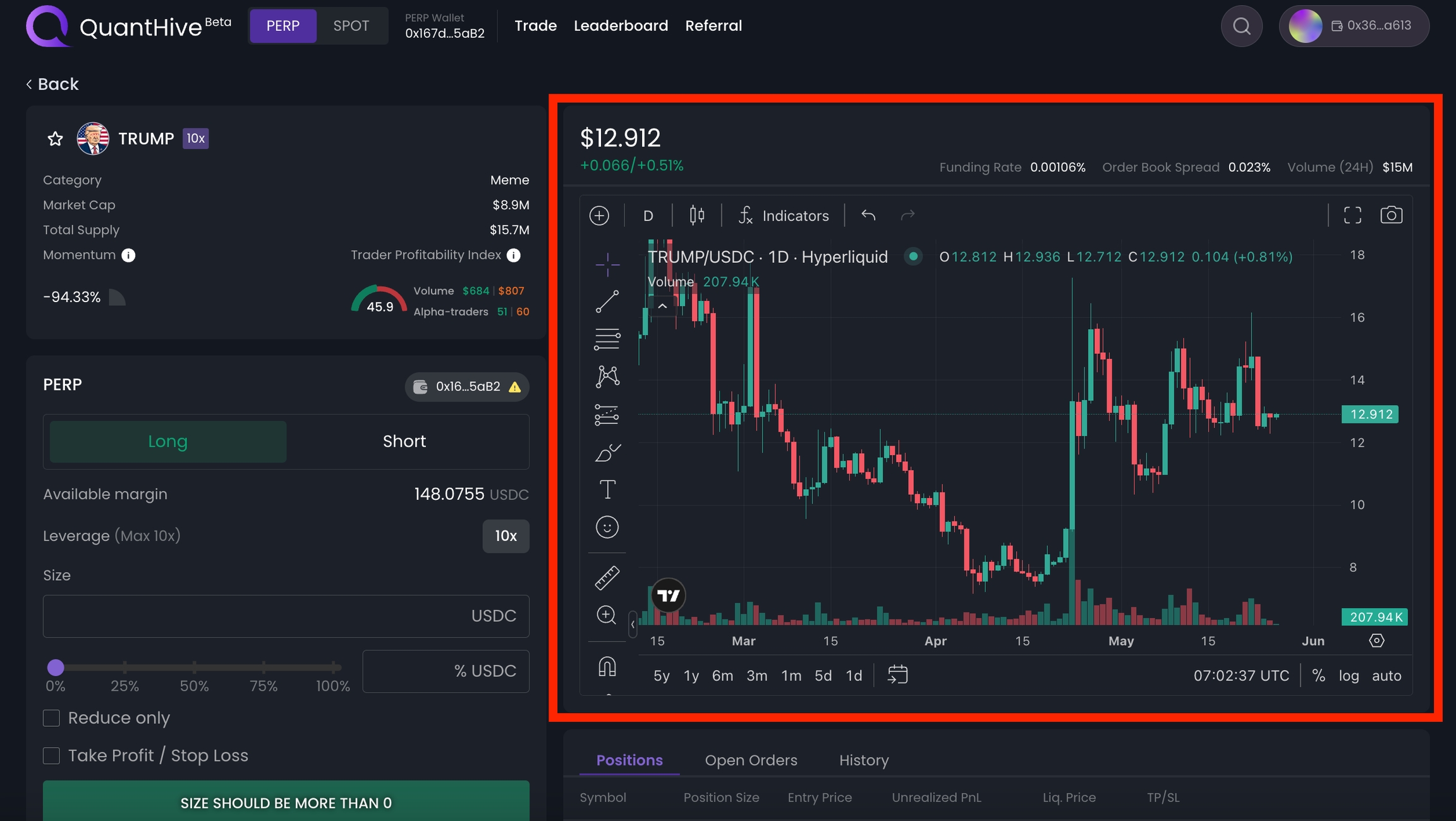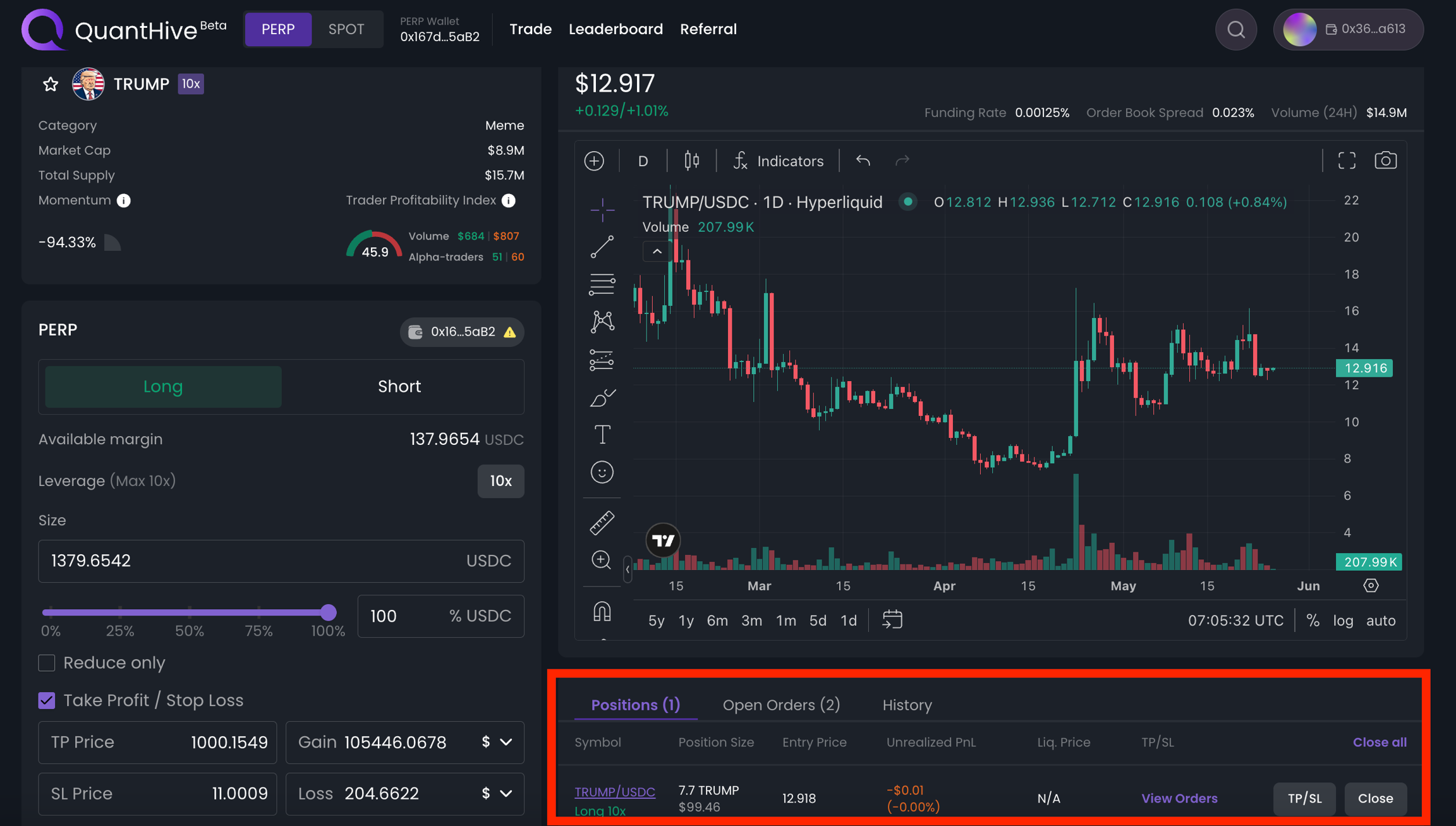 Whether you’re trend-trading or hedging, QuantHive's perp trading help you stay informed and agile across market conditions.